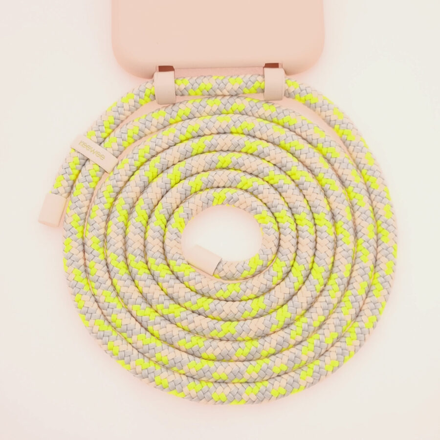 ★ Bandfarbe NEON: geflochtene Kordel in Neon-Gelb, Rosé und Grau. Die Metallelemente sind ebenfalls in Hellrosé.