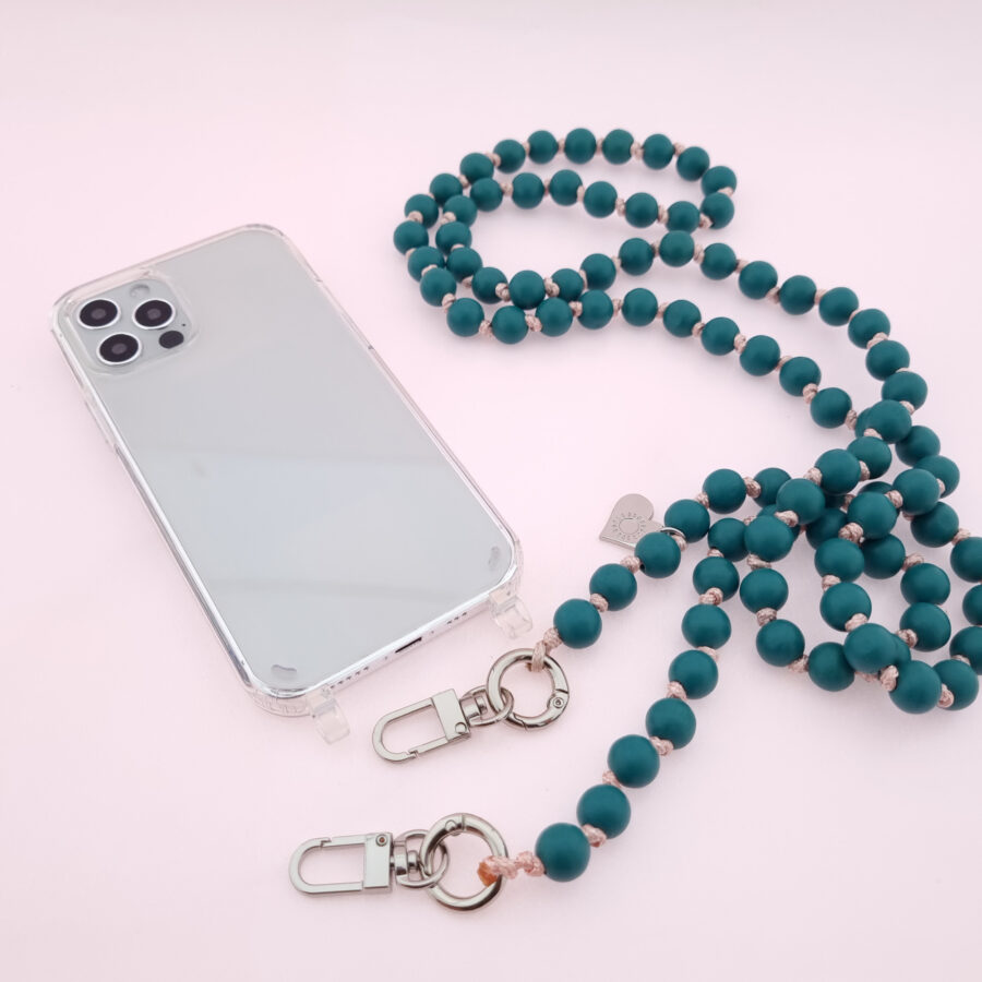 Handykette SMARAGD mit Holzperlen inkl. Case